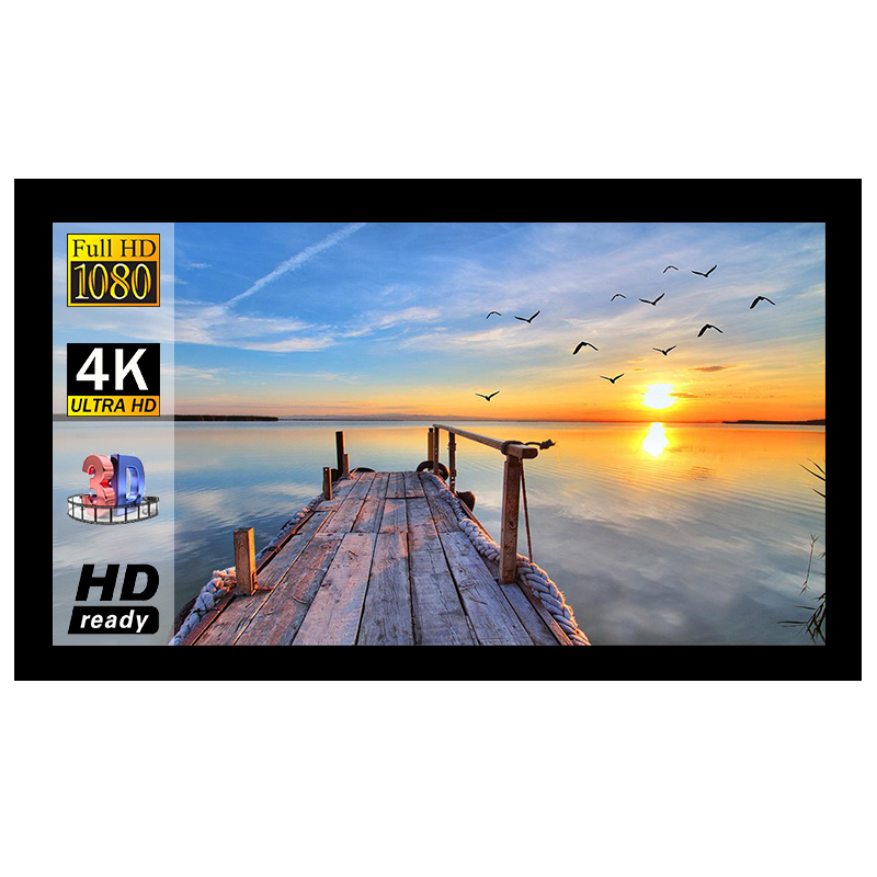 Fixed frame projector screens are among the most popular projector screens, especially for Home Theaters, Boardrooms, Auditoriums and anywhere a permanent wall-mounted solution is suitable. Fixed Frame screen are more easily mounted, requiring less installation and no electrical connectivity. Fixed Frame screens feature an ideally flat projection surface that provides a perfectly flat surface to optimize the resolution and image quality of your HD and 4k capable projectors.